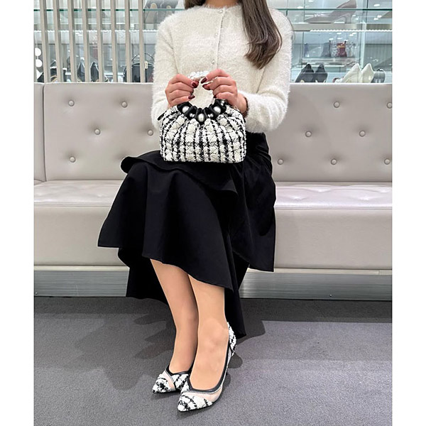 ★这款9cm高跟浅口鞋以水晶石饰带点缀出华丽感。鞋尖的斜线设计得恰到好处,深浅适中的位置营造出精致的印象。