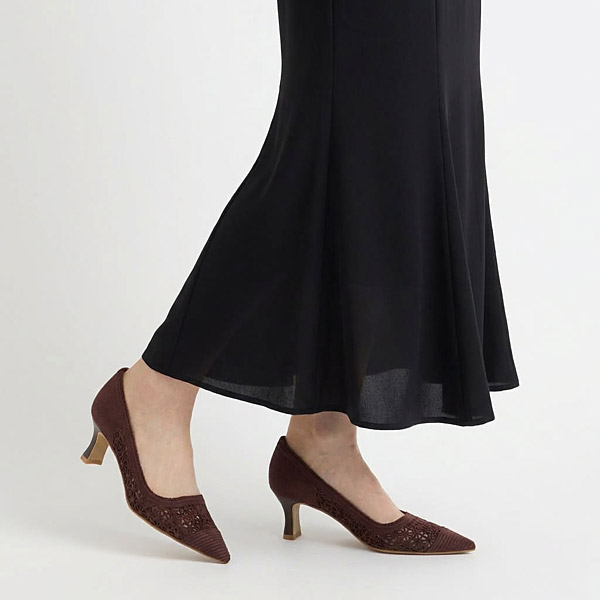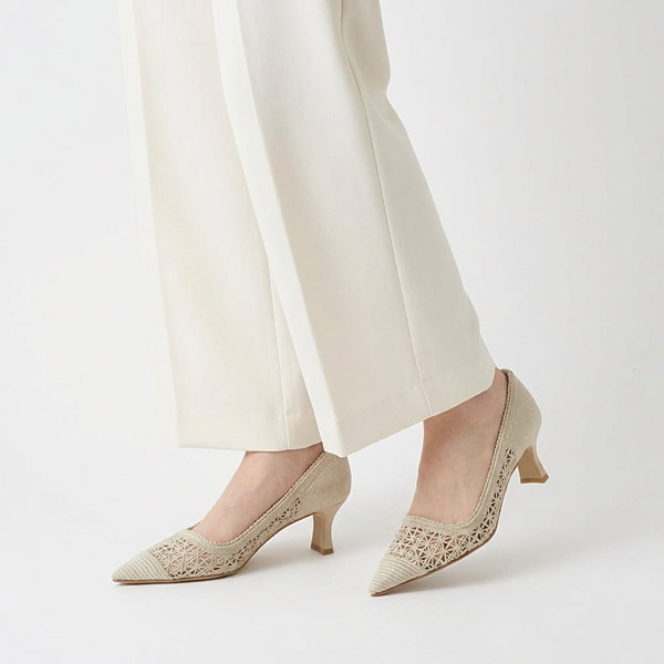 ★这款钩针蕾丝浅口鞋采用受建筑启发的结构性针织面料,充满智慧美感。逐一钩织而成的钩针面料鞋,足部触感极为柔软,穿着时仿佛被温柔包裹。如同格子窗般层层交叠的线条营造出优美的立体感,为成熟女性的足下增添优雅气质。