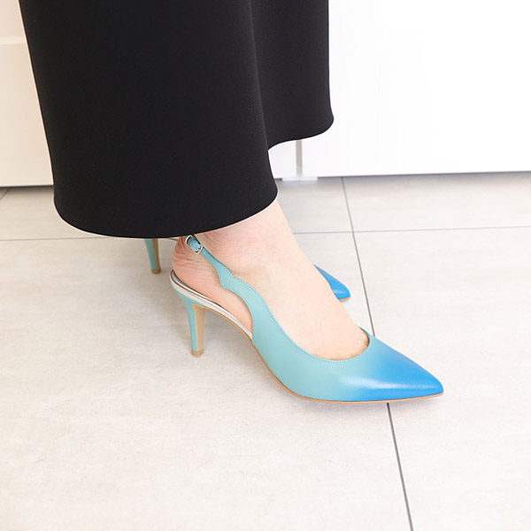 ★展現自然界變幻之美的原創皮革後扣帶淺口鞋。採用符合環保LWG認證的皮革,並手工施以漸層加工,靈感源自魔幻時刻的幻想天空。扣帶採用以雲朵與波浪為主題的剪裁設計。此系列蘊含著希望透過設計讓人重新感受自然之美,並對今後也想持續珍惜與守護的自然加深敬意的心意。