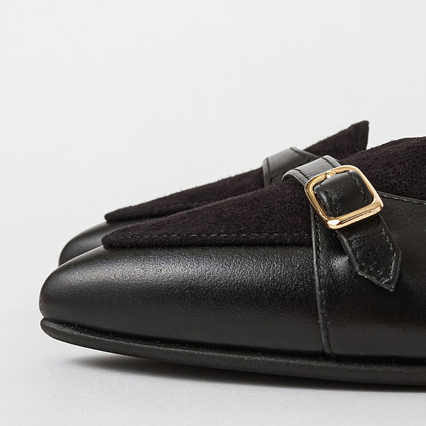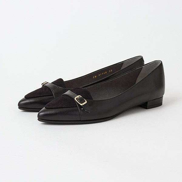 ★以孟克扣帶風絆帶亮眼點綴的尖頭平底鞋。鞋面剪裁不會過深,展現適度的女性氛圍。