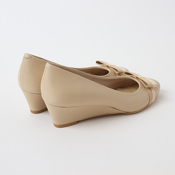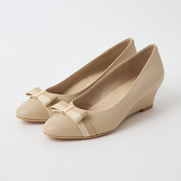 ★雙色羅緞蝴蝶結為亮點的5cm坡跟淺口鞋。採圓頭設計,穿起來也略感寬鬆。坡跟具穩定感,無論是長時間穿用或工作時穿用肯定都能讓您綻放光彩!
