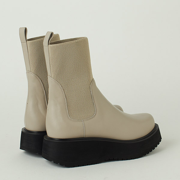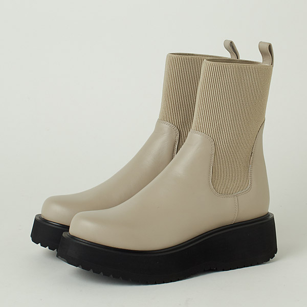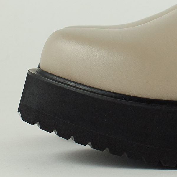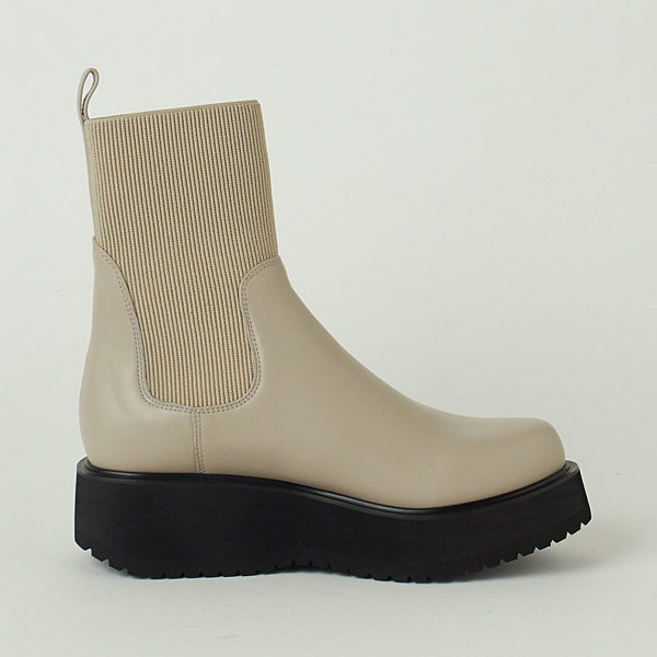 ★區塊輪廓的厚底鞋底,新穎的異材質混搭短靴。看似纖細的腳踝周圍採用具伸縮性的鬆緊材質。厚底鞋底與張弛有度的輪廓,極具魅力。
