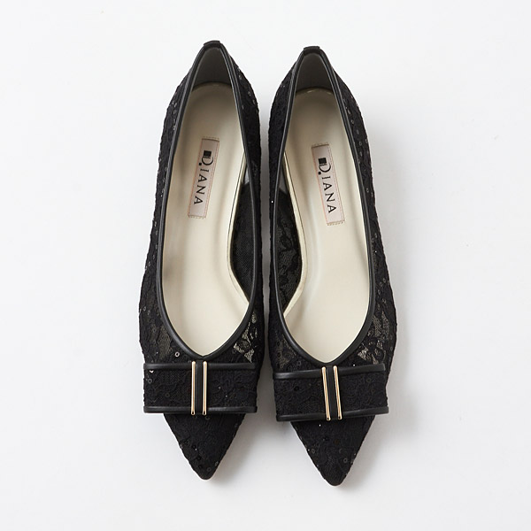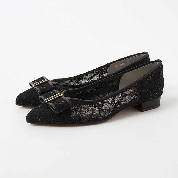 ★浪漫蕾絲平底淺口鞋。以點綴著蝴蝶結的尖頭設計,營造淑女氛圍的鞋款。