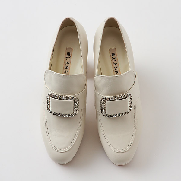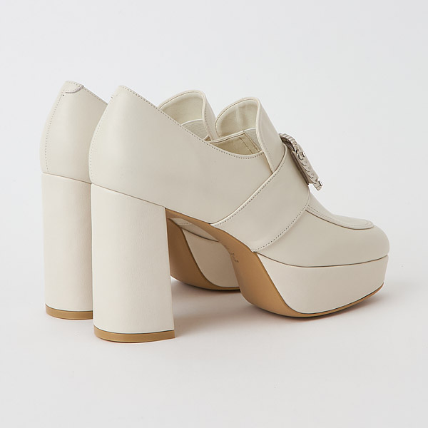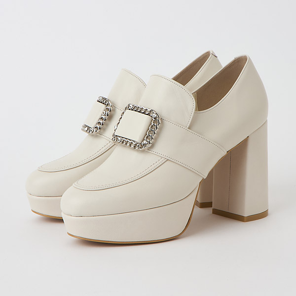 Pumps with a loafer design and added volume at the soles. A key feature is the buckle that is like an accessory with a dainty chain and tiny rhinestones in its loops! The strap is positioned perfectly to create an exquisite line that boosts your style.