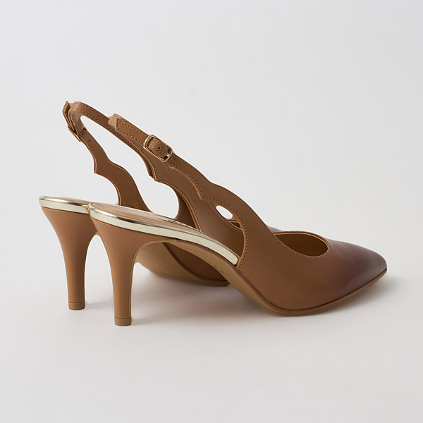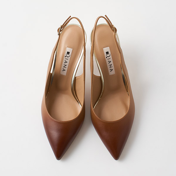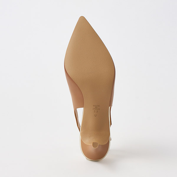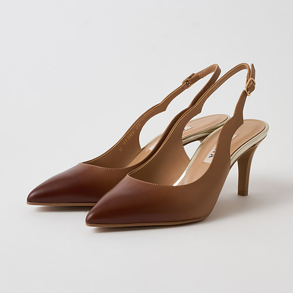 Slingback pumps made of originally designed leather that expresses beautiful, ever-changing nature. A gradient effect, inspired by the enchanting sky during the magic hour, is applied by hand to LWG-certified leather made with care for the environment. The straps are cut into a shape inspired by clouds and flowing waves. This collection embodies the desire for us to rediscover the beauty of nature through design, deepen our respect for the natural world, and continue to protect and cherish it.
