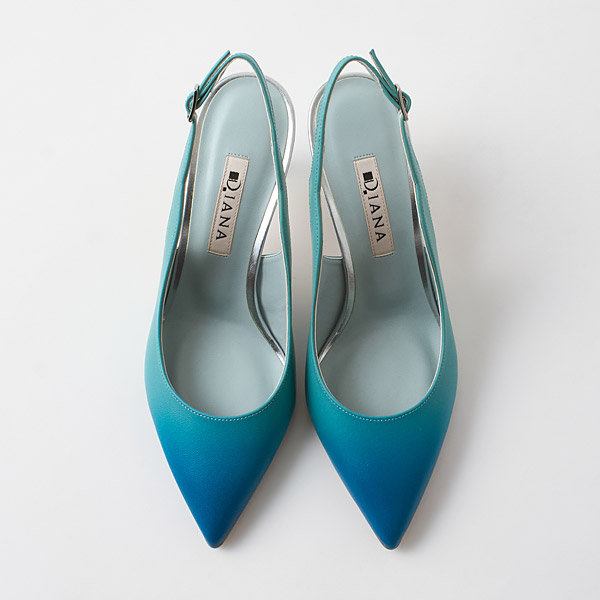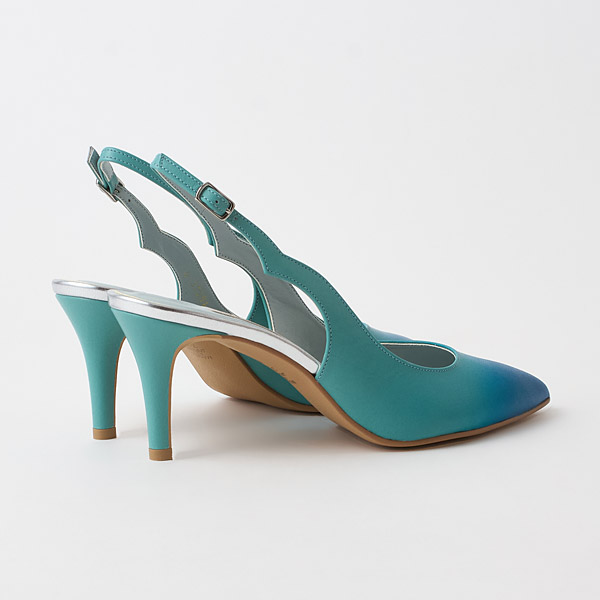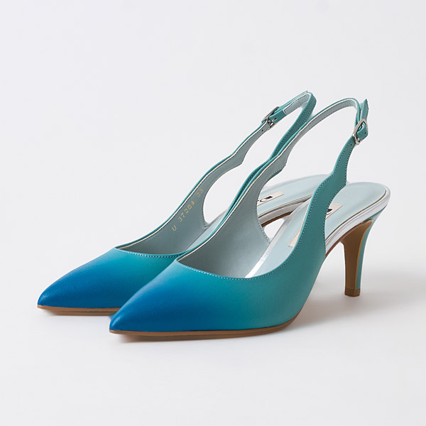Slingback pumps made of originally designed leather that expresses beautiful, ever-changing nature. A gradient effect, inspired by the enchanting sky during the magic hour, is applied by hand to LWG-certified leather made with care for the environment. The straps are cut into a shape inspired by clouds and flowing waves. This collection embodies the desire for us to rediscover the beauty of nature through design, deepen our respect for the natural world, and continue to protect and cherish it.