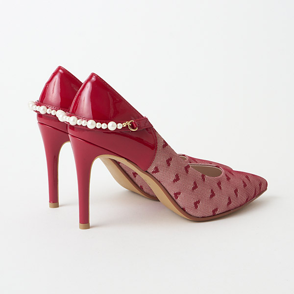 Pumps with 9 cm heels featuring a pearl design accent that is just like an accessory.