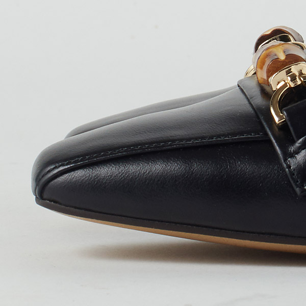The bit details that are natural bamboo are embellished with elegant hardware pieces to exude a classy look. The loafer part has a thin design featuring lines that seem to flow towards the toe.