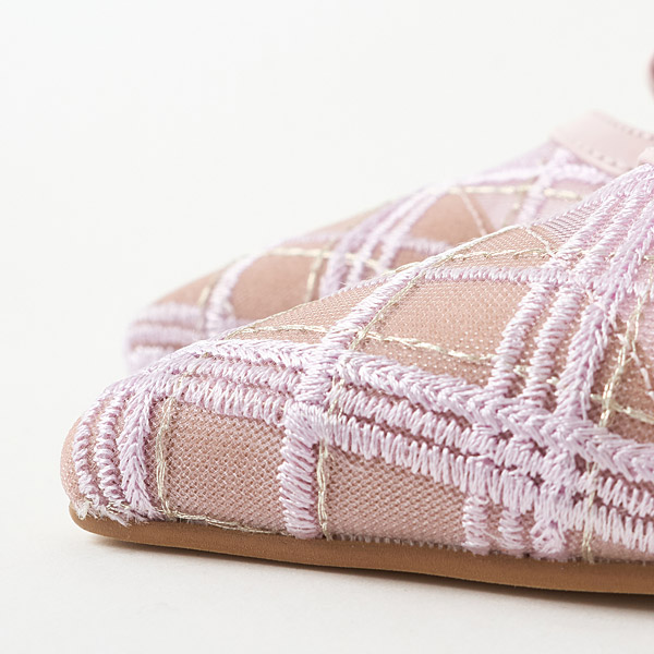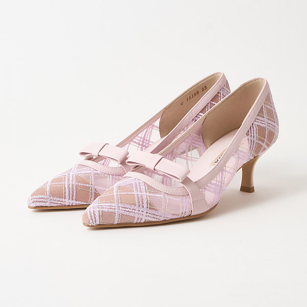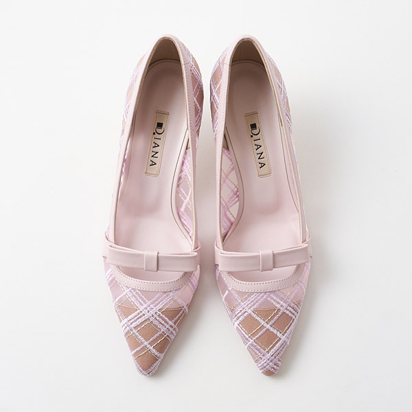 Pumps with an originally designed fabric that is Diana's reinterpretation of a traditional British-style checkered pattern. The topline with a layered bow shows a subtle glimpse of skin, creating a look that isn't too cutesy and looks great on mature women as well!