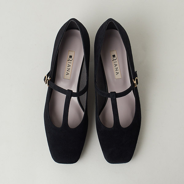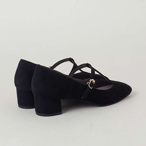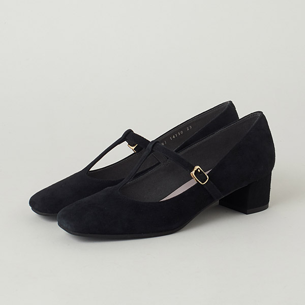 T-strap pumps with slender square toes. The strap design and chunky heels that boost your classical mood stabilize your step for great walking ease.