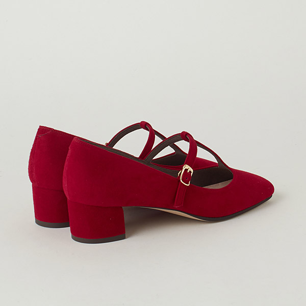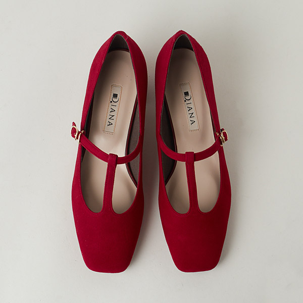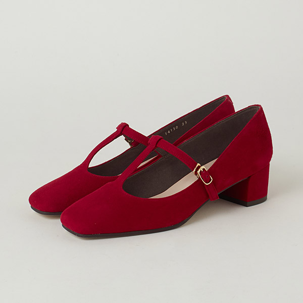 T-strap pumps with slender square toes. The strap design and chunky heels that boost your classical mood stabilize your step for great walking ease.