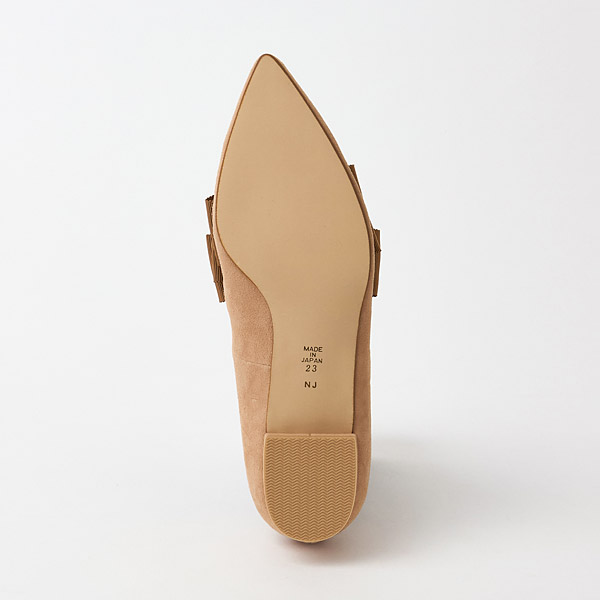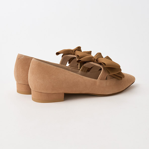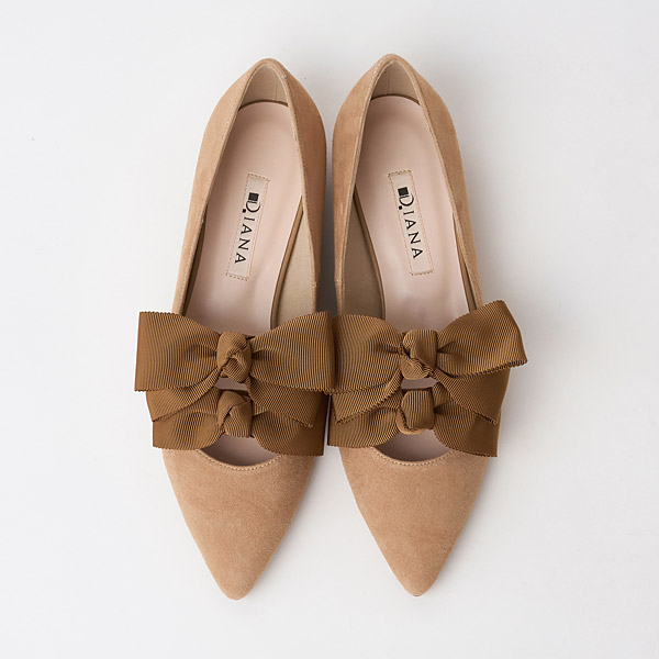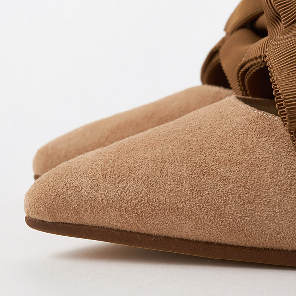 Flats with big fluffy double bows on each shoe to match voluminous winter styles. Slender pointed toe base to create a ladylike look that is not too casual. A glimpse of your instep is visible under the bows.