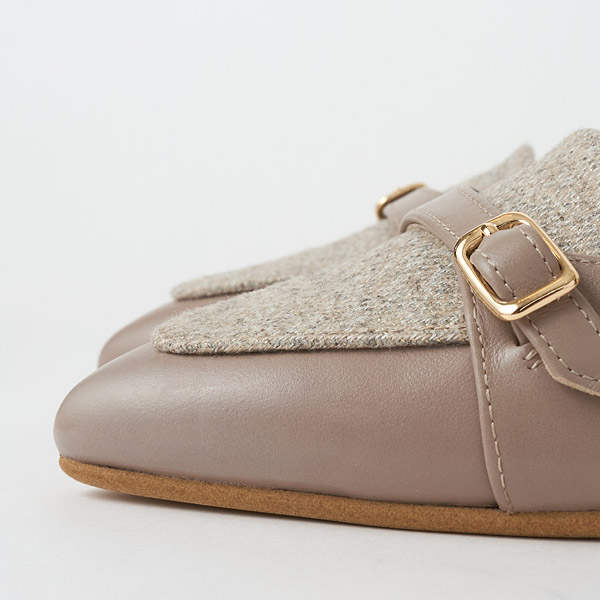 Pointed toe flats featuring a monk strap style design. The shorter vamp produces just the right feminine aura.