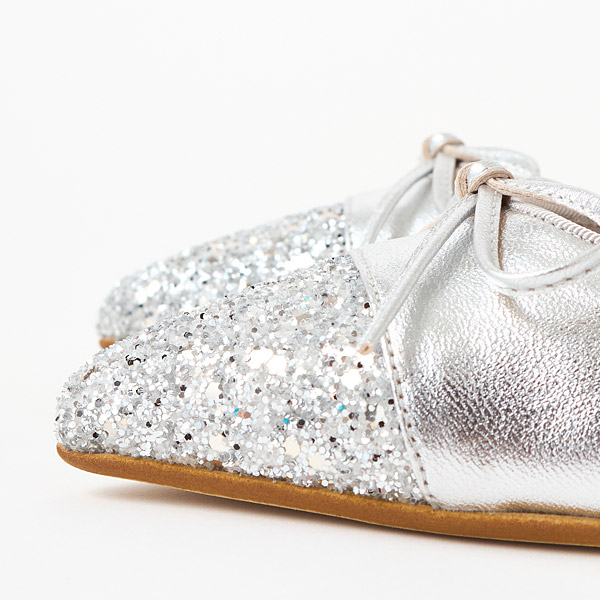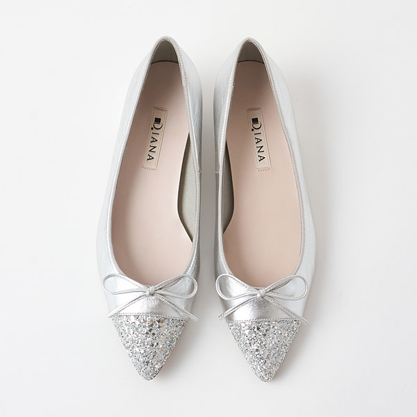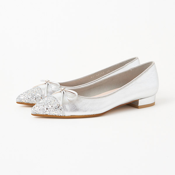 Ballerina flats with slender pointed toes. The pointed toes add elegance that keeps them from looking too casual.