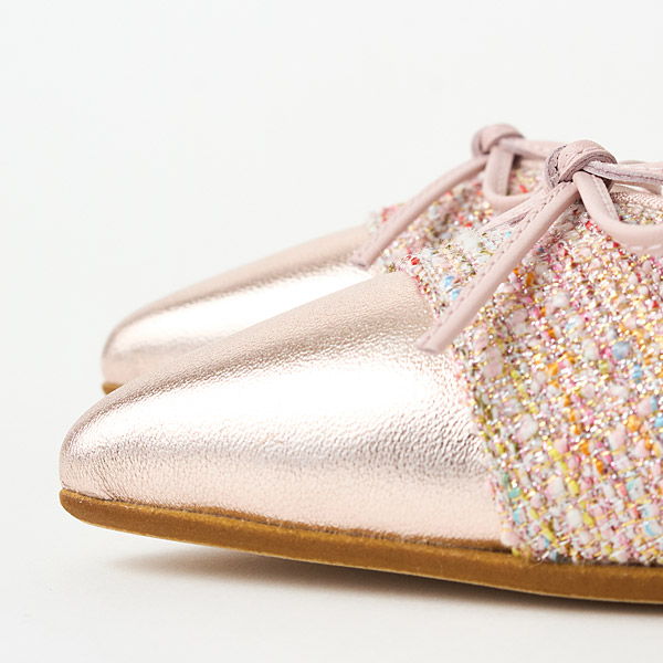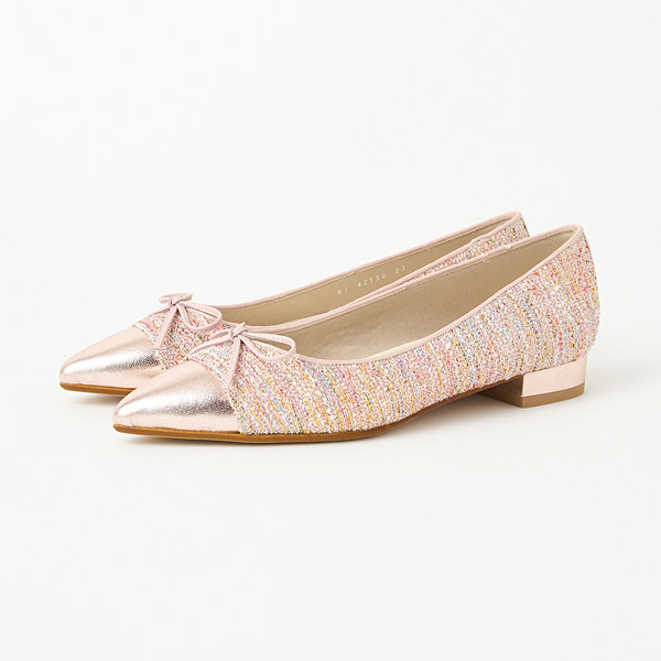 Ballerina flats with slender pointed toes. The pointed toes add elegance that keeps them from looking too casual.