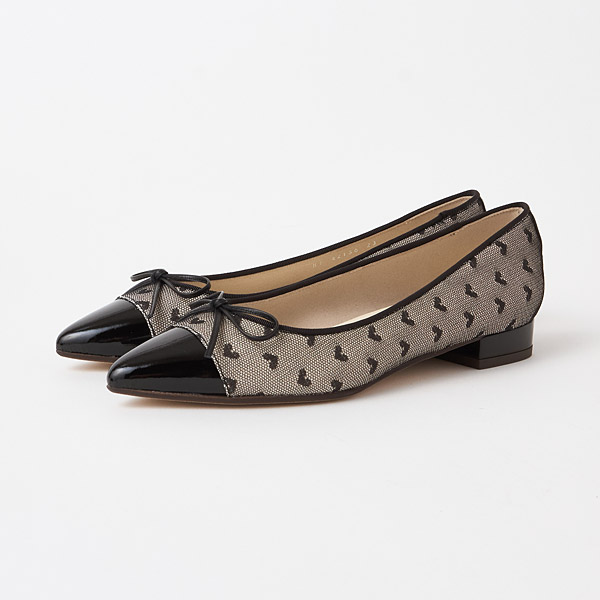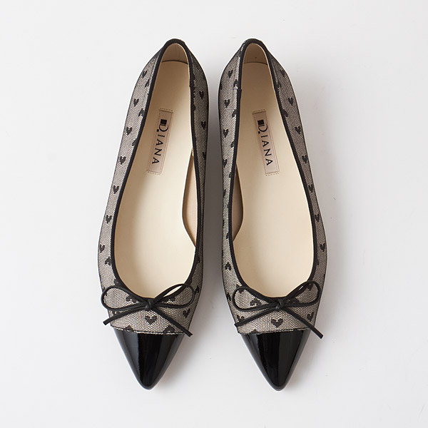 Ballerina flats with slender pointed toes. The pointed toes add elegance that keeps them from looking too casual.