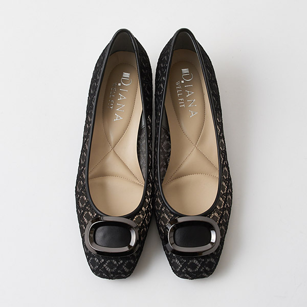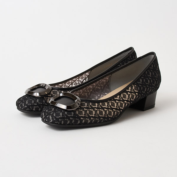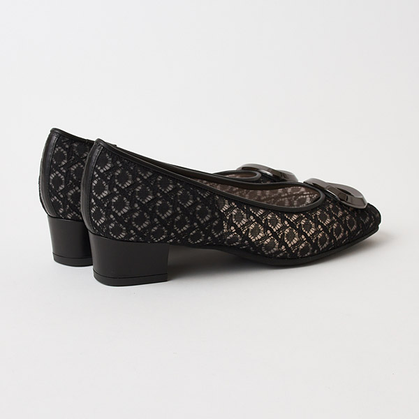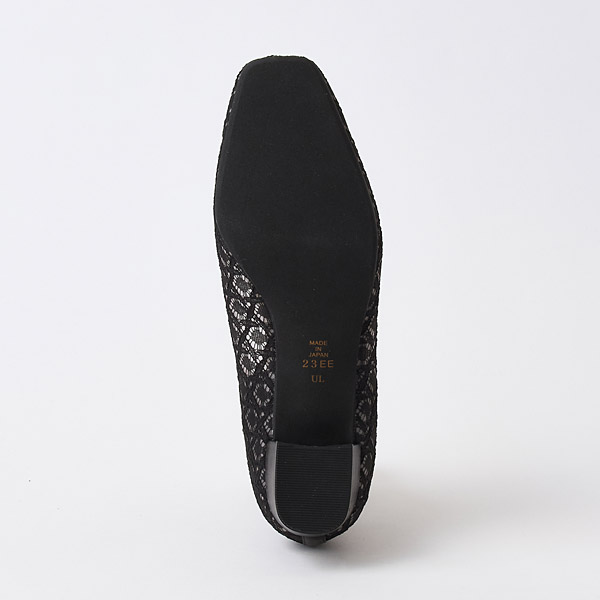 Flats that create a light and refreshing look with a slightly rounded square toe box and tulle lace with airy appeal. With sturdy straight heels, these are great for business wear or for those who find high heels difficult to wear.