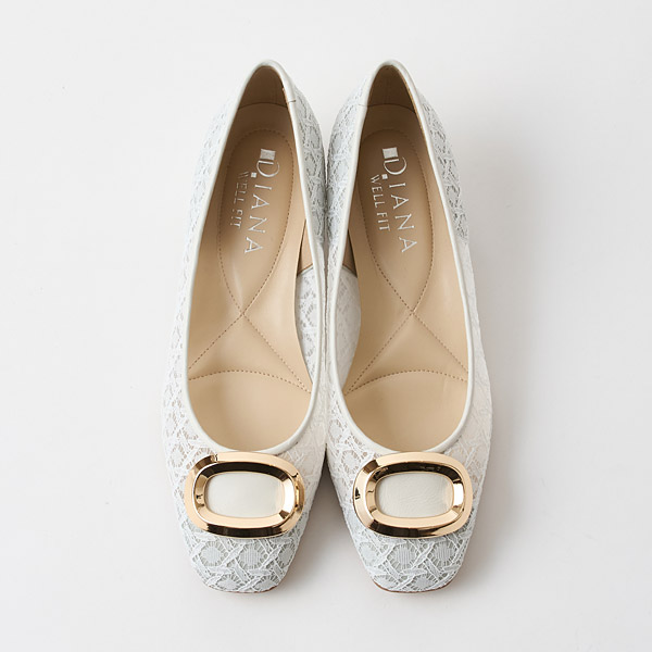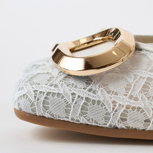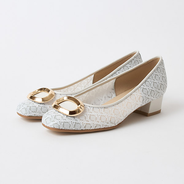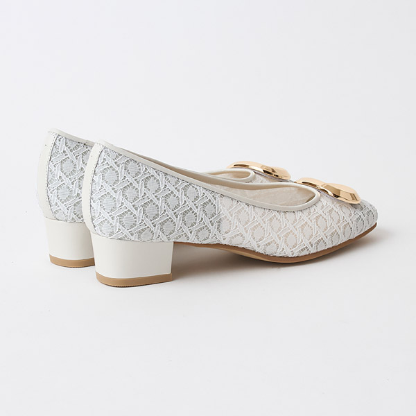 Flats that create a light and refreshing look with a slightly rounded square toe box and tulle lace with airy appeal. With sturdy straight heels, these are great for business wear or for those who find high heels difficult to wear.