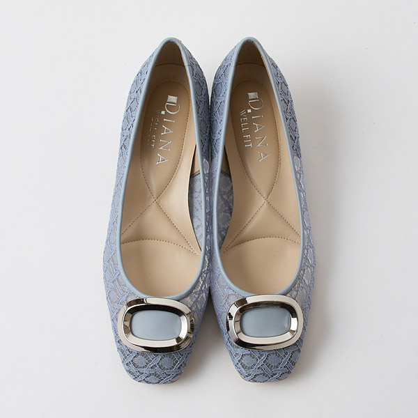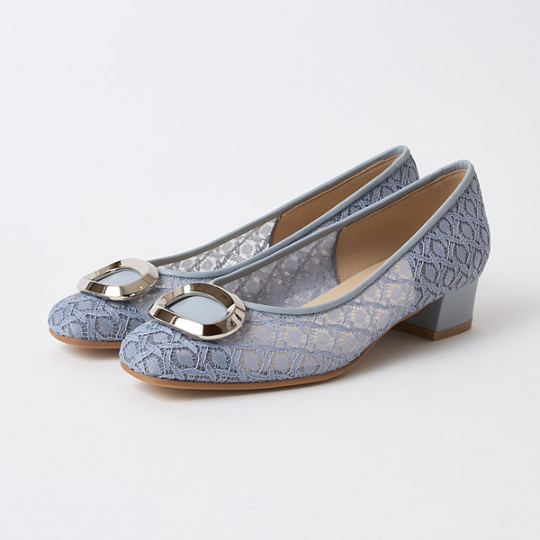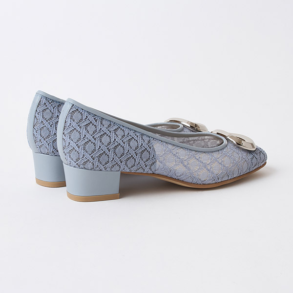Flats that create a light and refreshing look with a slightly rounded square toe box and tulle lace with airy appeal. With sturdy straight heels, these are great for business wear or for those who find high heels difficult to wear.