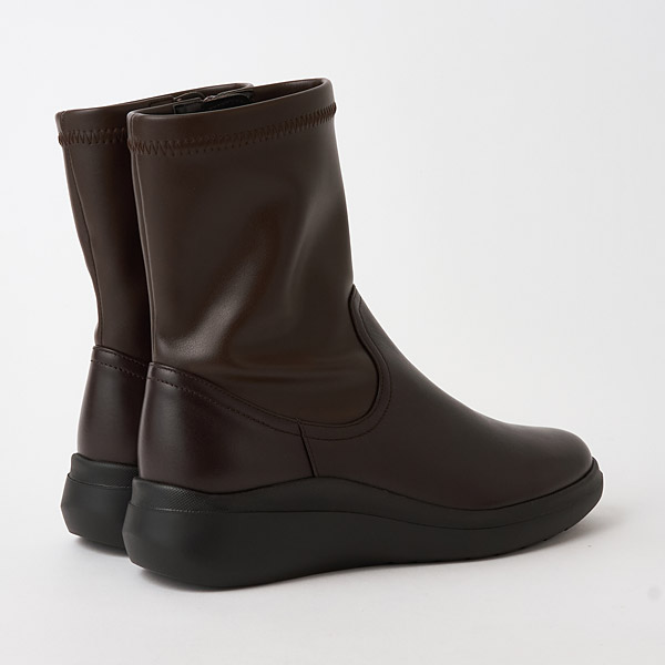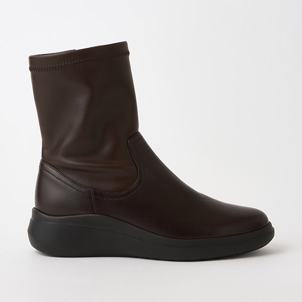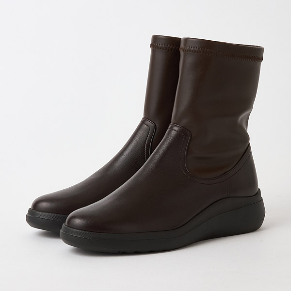 Stretch short boots that fit softly around your legs. Presenting this model in a new look with molded soles that are light and sporty.