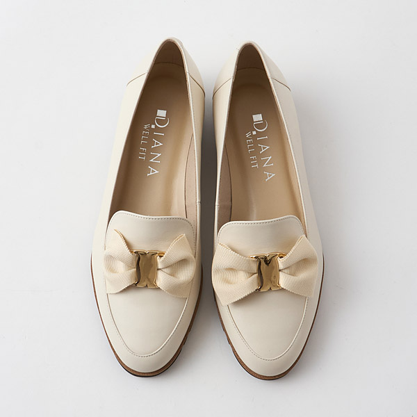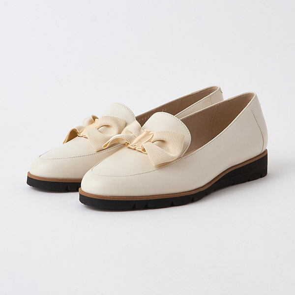 Gentle vibe with soft round toes ♪ Bow-adorned loafers (size EE width)
