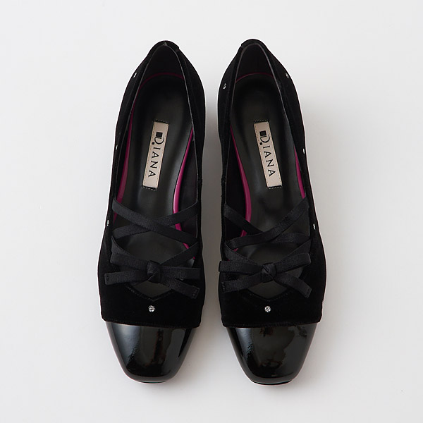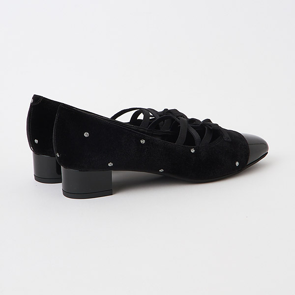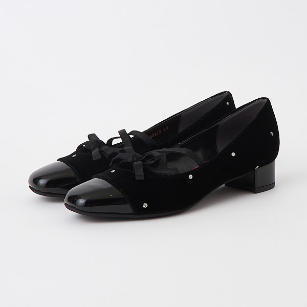 Low heel pumps with criss-crossing ribbons on the instep to create a balletcore vibe. The bow is positioned on the ribbon in a way that is flattering to your instep and reduces skin exposure, creating an elegant look. The rounded square toe box and stable chunky heels provide both walking ease and a cute look.