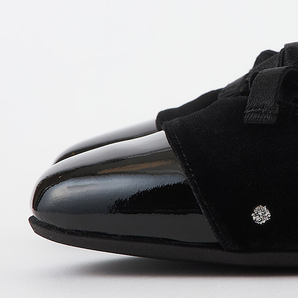 The enamel is easily color stained by other materials and stains are difficult to remove. Take care when storing the shoes.