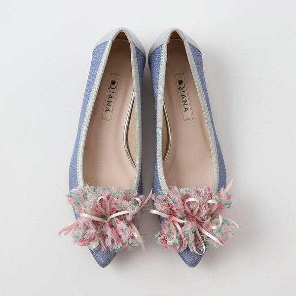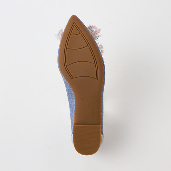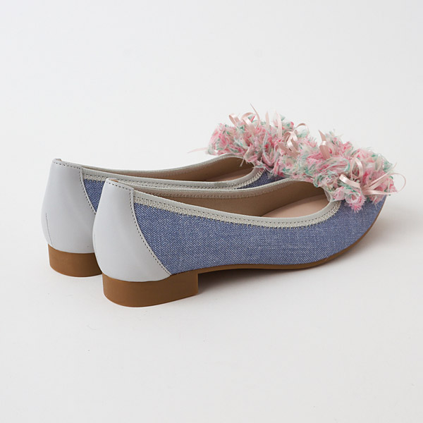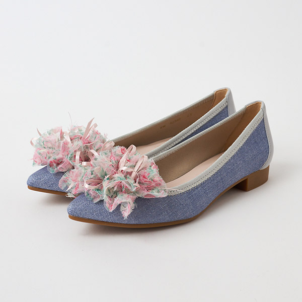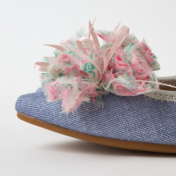 Ballet flats featuring a glamorous frilly corsage of sheer material that becomes the star of the show. The voluminous look of the layered tulle creates a cute look. The frills have subtle bows inside to add a feminine touch.