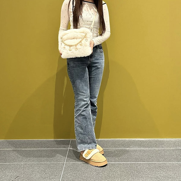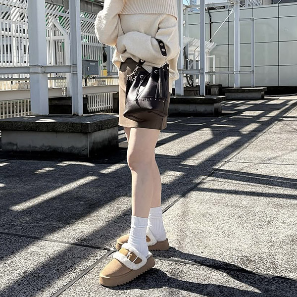Slipon mules with the voluminous look of mouton fur that is the best match for the current mood. These have soles that are about 4 cm thick to create trendy volume at your feet.