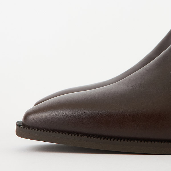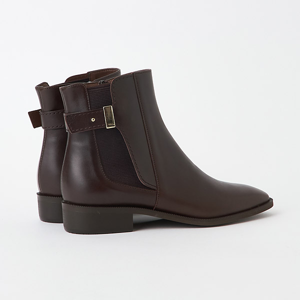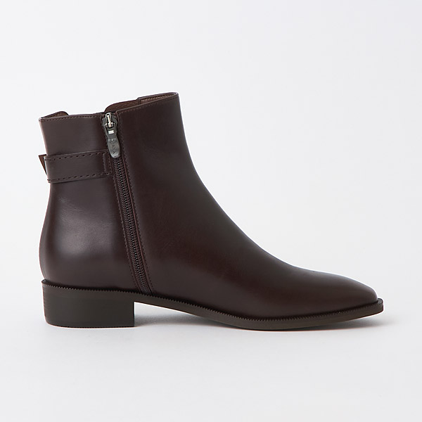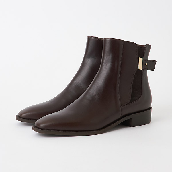 Short boots with slender square toes that create a sophisticated look. Gore panels on the outer facing sides offer some stretch to make them easy to slip on and off. The strap layered over the gore panel subtly highlights the hardware details to create a fresh and elegant casual look.