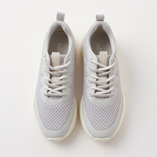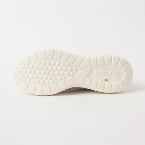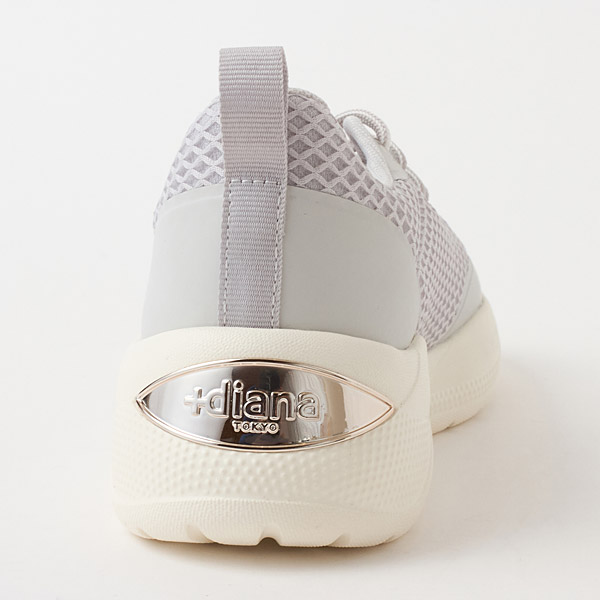 Get both a light fit that is great for daily wear and a stunning silhouette that is distinctive of +diana. Mesh material with airy appeal is embellished with two-toned shoelaces and a single rhinestone as subtle accents. The sparkly logo plate on the heel adds a classy touch to the simple design.
