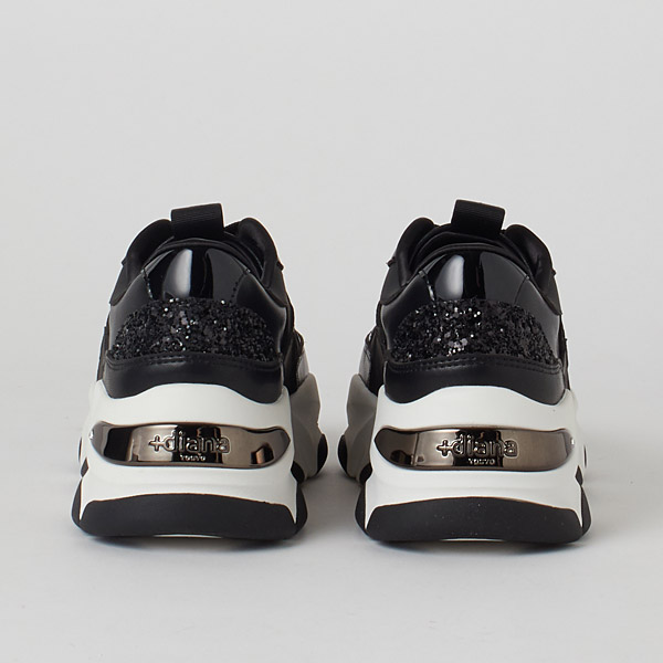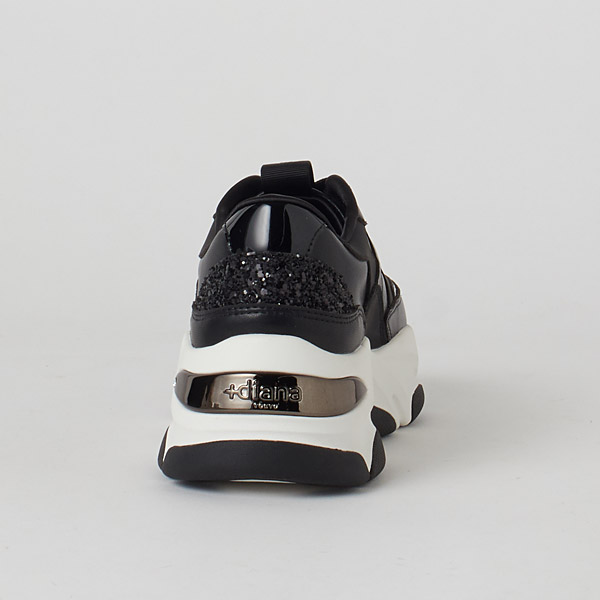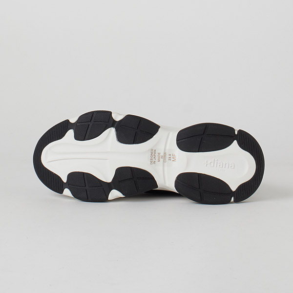 Sophisticated dad shoes with the exquisite balance of stylishness and femininity. These have a distinctive +diana feminine essence that matches a sporty look with rhinestone eyelets and slightly wide shoelaces. A logo plate with a single glittery rhinestone is embedded onto the sole to subtly add glamor from behind.