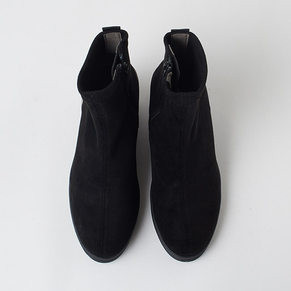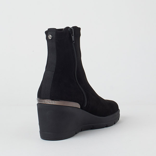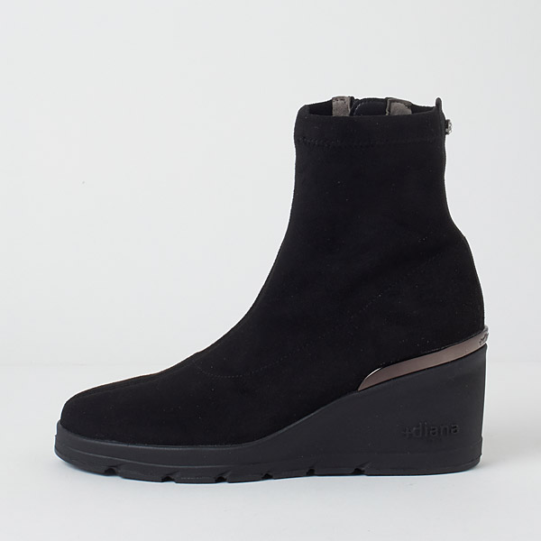 Silky material short boots in a refined minimalist design. The simple mostly unadorned design is paired with wedges featuring gorgeous lines to create the perfect balance of elegance and walking east.