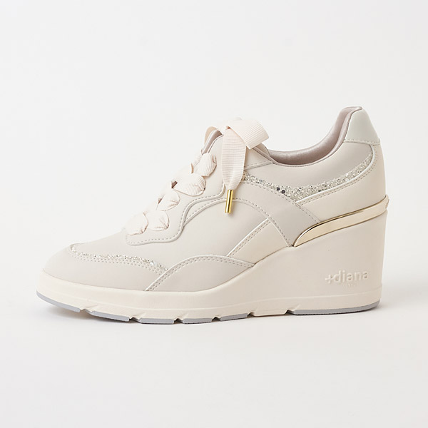 New model in the +diana high heeled series. Lightweight EVA wedges and low rebound cushioned insoles provide both soft and puffy comfort and great stability. These sneakers are a great carefree choice for daily wear that also boosts your style.