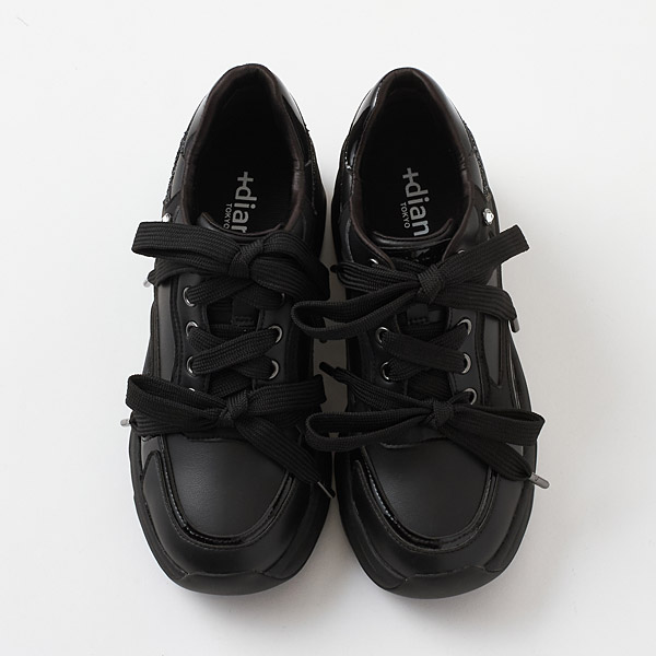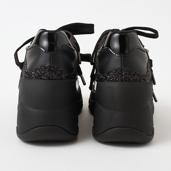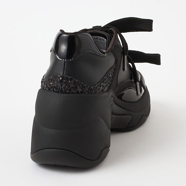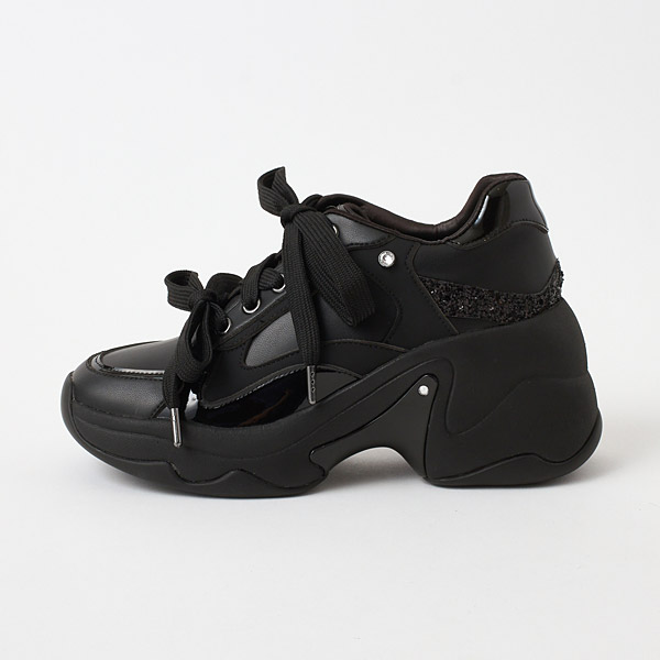 New sneakers that boost your style. The voluminous soles that are about 8 cm thick at the front as well create well-balanced comfort while keeping your legs looking stunning. The volume design is carefully calculated to create a voluminous sneaker for sophisticated look that is not too rugged. The center part is decorated with a single rhinestone to add elegance.