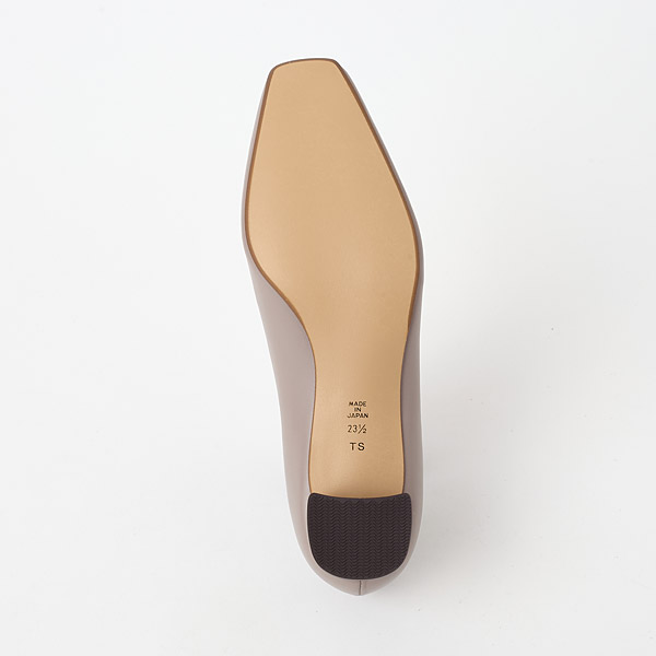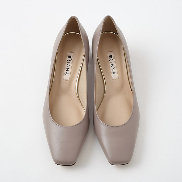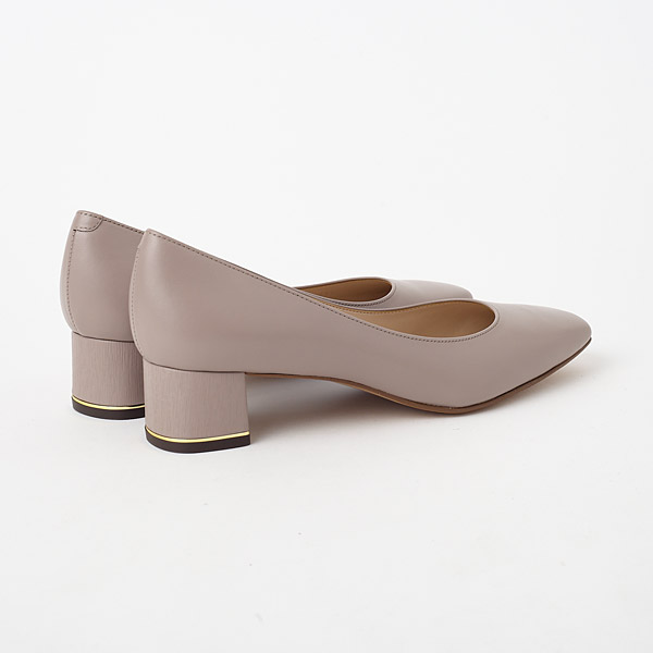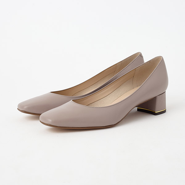 Simple square toe pumps with an accent only on the heel featuring embossed leather and a gold line.