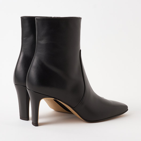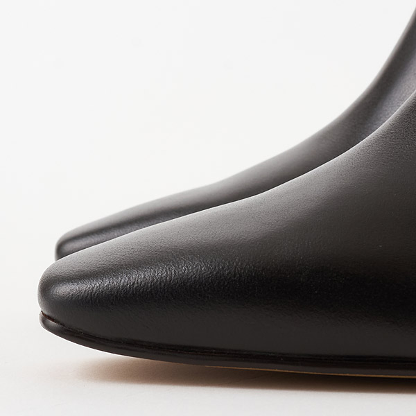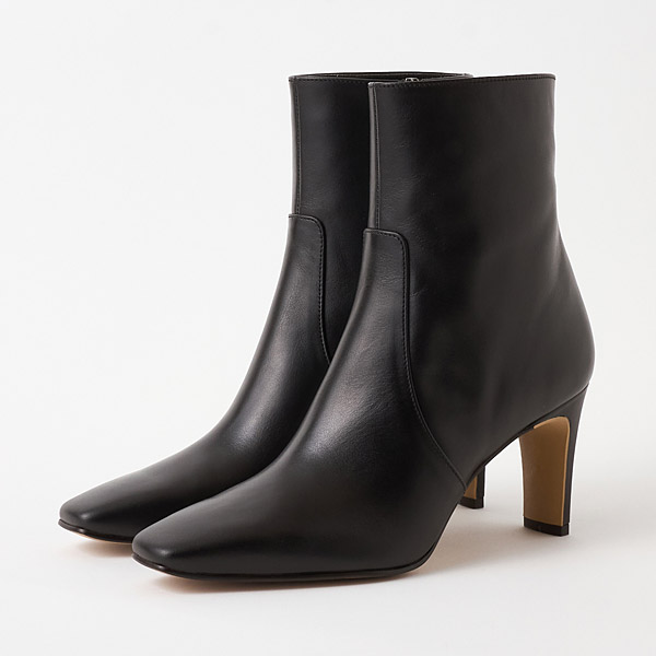 Simple short boots with a stunning silhouette. The design features a slender square toe box, a beautiful rising line over your instep, and shafts that are just the right width around your ankles to achieve a stunning silhouette. Slender and dainty slim block heels make the overall look dainty and minimalist. With the simple design, extra attention was given to the silhouette and comfort.