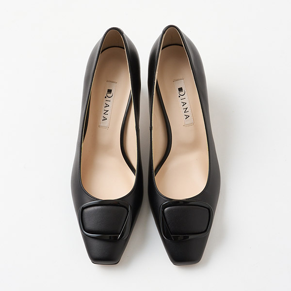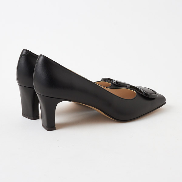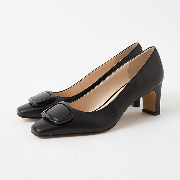 Mid-heel pumps with a shiny elegant hardware motif. With just the right amount of glamor, these are great for both work and days off!