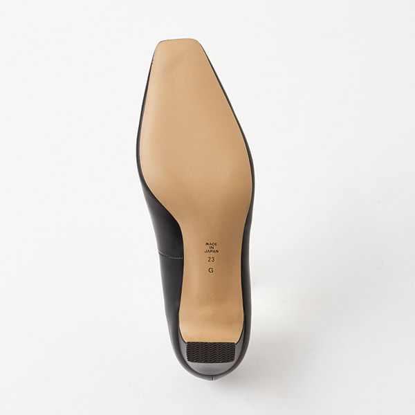 A slender square toe box is paired with slim block heels to provide a sturdy fit while retaining the elegance of the silhouette.