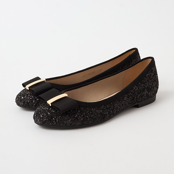 Ballet flats with the pretty look of flat bows on the toe box. The bows are embellished with a hardware detail to add a touch of high class. Basic round toe form that leaves a gentle impression. The soles are springy originally designed molded soles. They follow your foot movement snugly to provide cozy lightweight comfort.