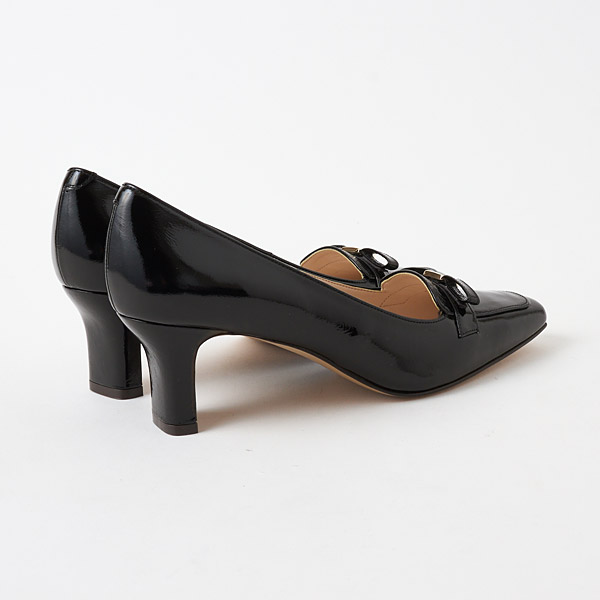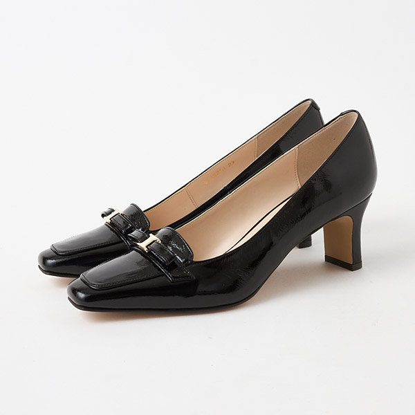 A slender square toe box is paired with slim block heels to provide a sturdy fit while retaining the elegance of the silhouette.
