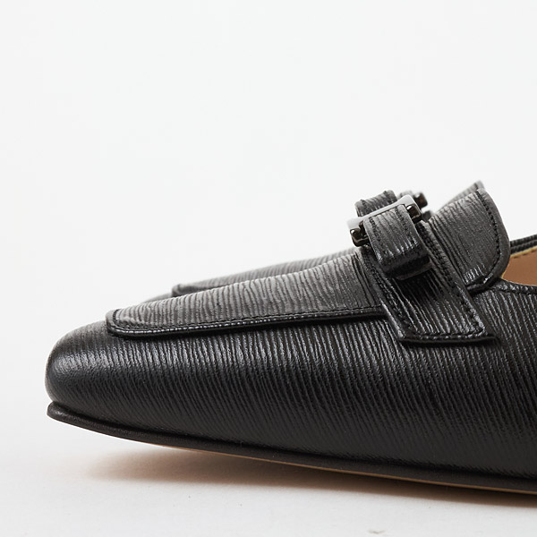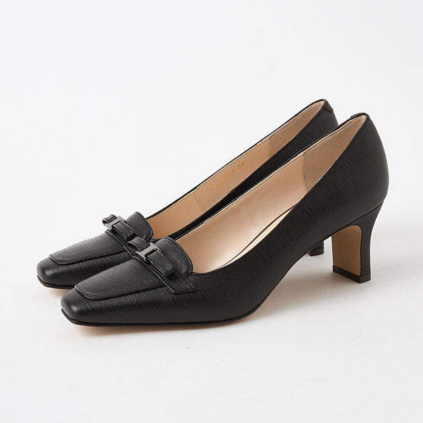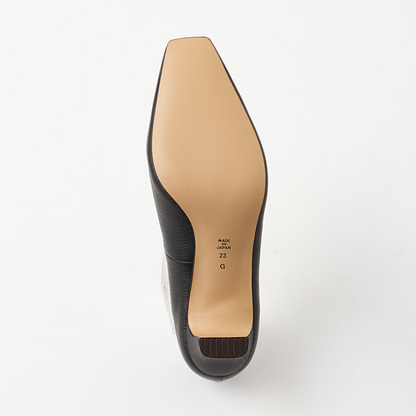 A slender square toe box is paired with slim block heels to provide a sturdy fit while retaining the elegance of the silhouette.