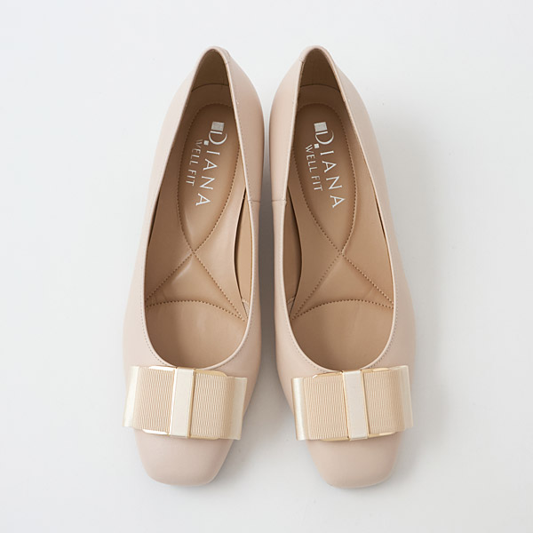 Flats with a slender square toe box that creates an elegant look. Bow details on the instep create a feminine aura. These are an excellent choice for business shoes if you feel uncomfortable in high heels or have to stand for long hours at work.