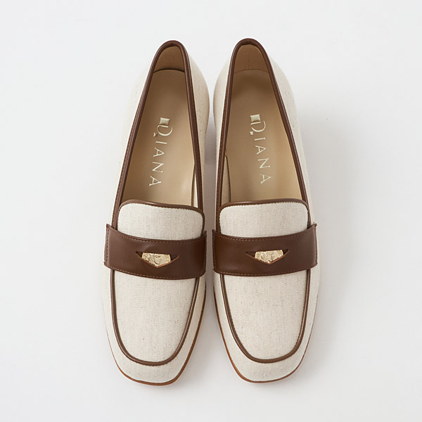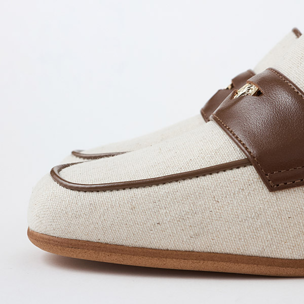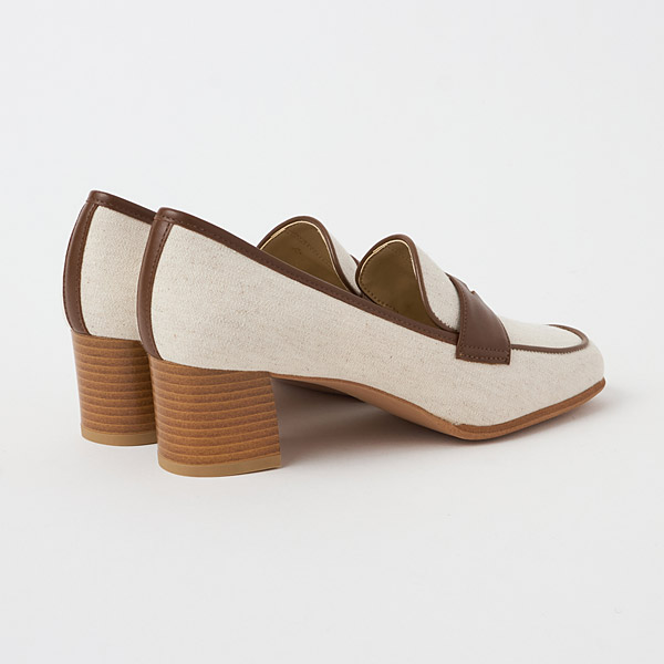 High heeled loafers featuring a high quality leather texture and a slender soft square toe box. A subtly shining gold coin in the middle adds a posh touch.