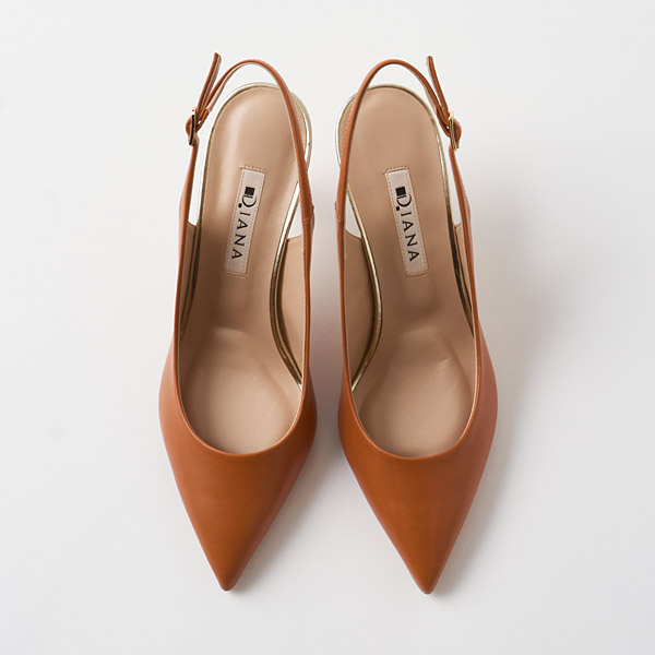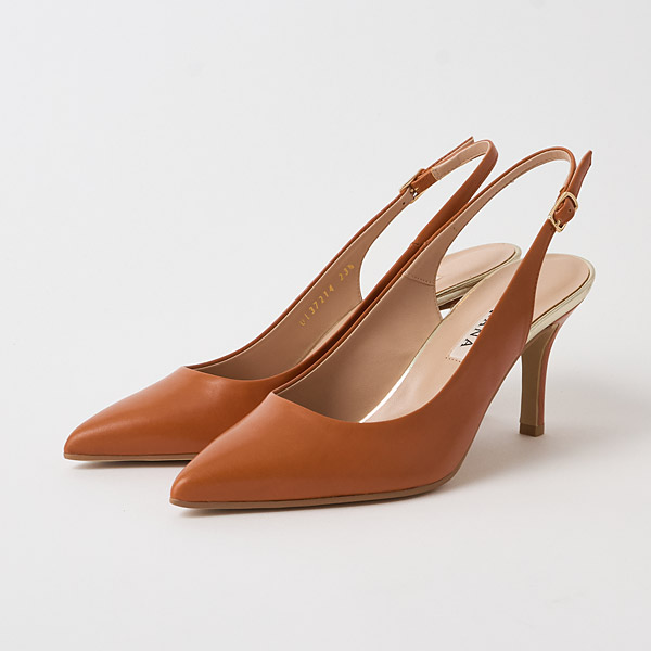 Simple slingback pumps with a lovely silhouette featuring pointed toes and slender heels. Smooth leather pumps with a crisp and neat look but in a slingback design for a seasonal and airy vibe.