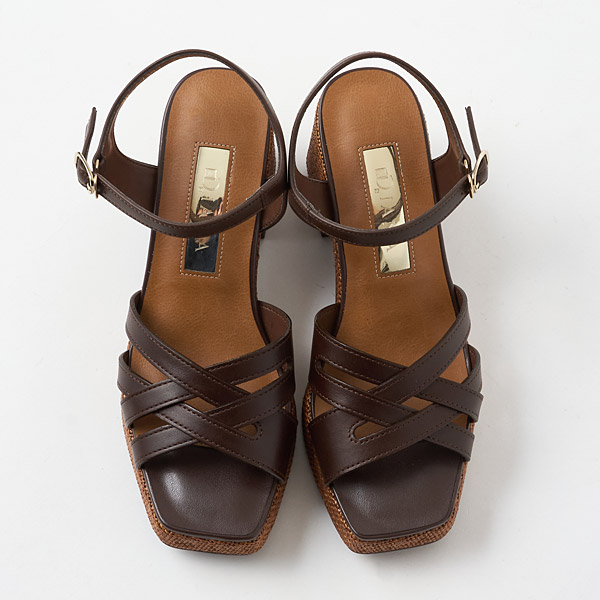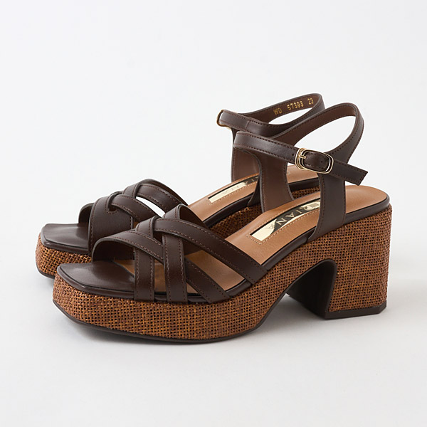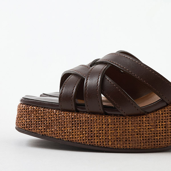 Classic thick-soled sandals from DIANA that are essential for summer. The uppers have an asymmetrical design that combines stability to hold the big toe side of your foot securely in place and thin lines on the pinky toe side. They offer a snug hold while making your feet look slender and stunning with the exquisite airy appeal of well-calculated lines. The raffia-style material around the soles makes a great seasonal accent.