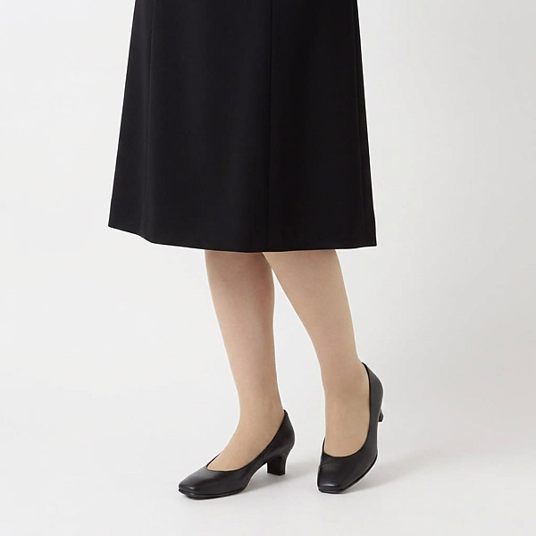 Slender square toes leave a good impression! These black shoes that are great for everything from work to special occasions keep your feet dry in sudden showers. They are functional pumps made with close attention to every detail including high-quality leather uppers with waterproofing treatment applied from the base and a deterioration-resistant lining for great comfort and versatility.