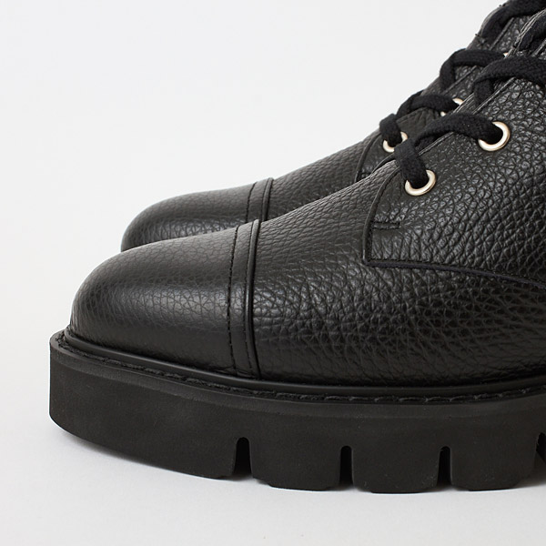 Short lace up boots with layered voluminous thick soles that create a trendy look. Casual bonding of the collar provides cozy comfort and adds volume to the silhouette.