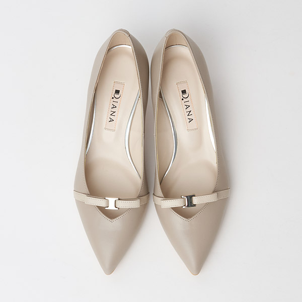 Mid-heel pumps featuring sharp bows on straps over the instep. Thin bows, V-cut vamps, and dainty heels make your feet and legs look slender and beautiful. These provide both walking ease and elegance. The V-cut vamps are designed with higher sides to hold your feet securely in place.